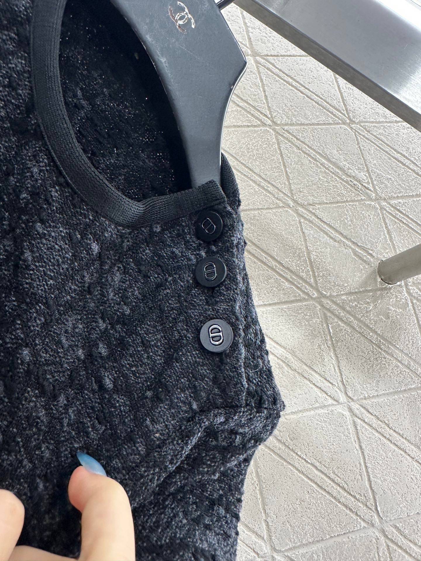 Custom YB imported cotton jacquard material, high-quality texture, full of appearance, round neck short sleeve dress cut, cuffs and neckline with three-dimensional color binding to highlight the details, with delicate dark yarn regular interweaving rattan grid pattern all over the body, and the letter logo round buckle on one shoulder echoes, the ladylike style is immediately apparent, perfectly interpreting the elegant feeling of a daughter. The whole black color shows nobility and texture, intellectual and gentle, the best choice for attending formal occasions