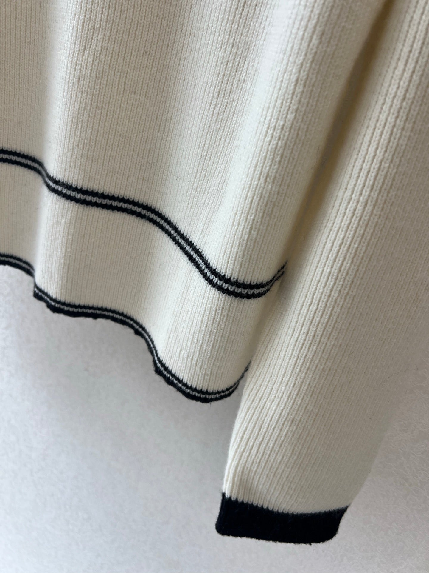 100% cashmere fabric is comfortable, breathable, slim fit and slimming. The neckline is embellished with pink stripes to increase layering. The hem is decorated with pink stripes, elegant and generous