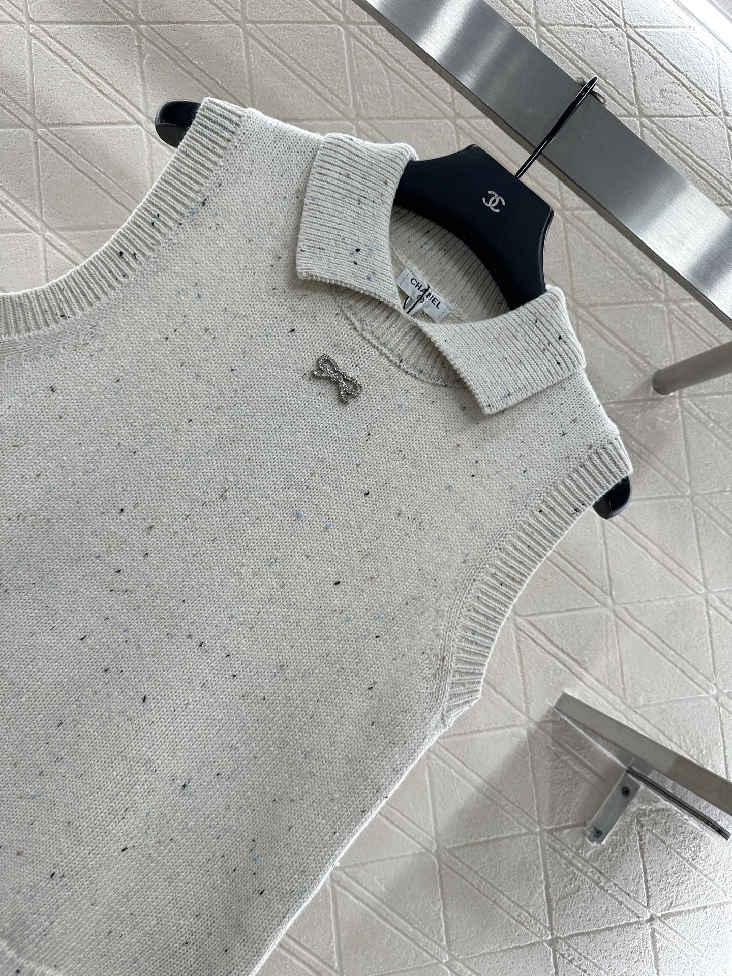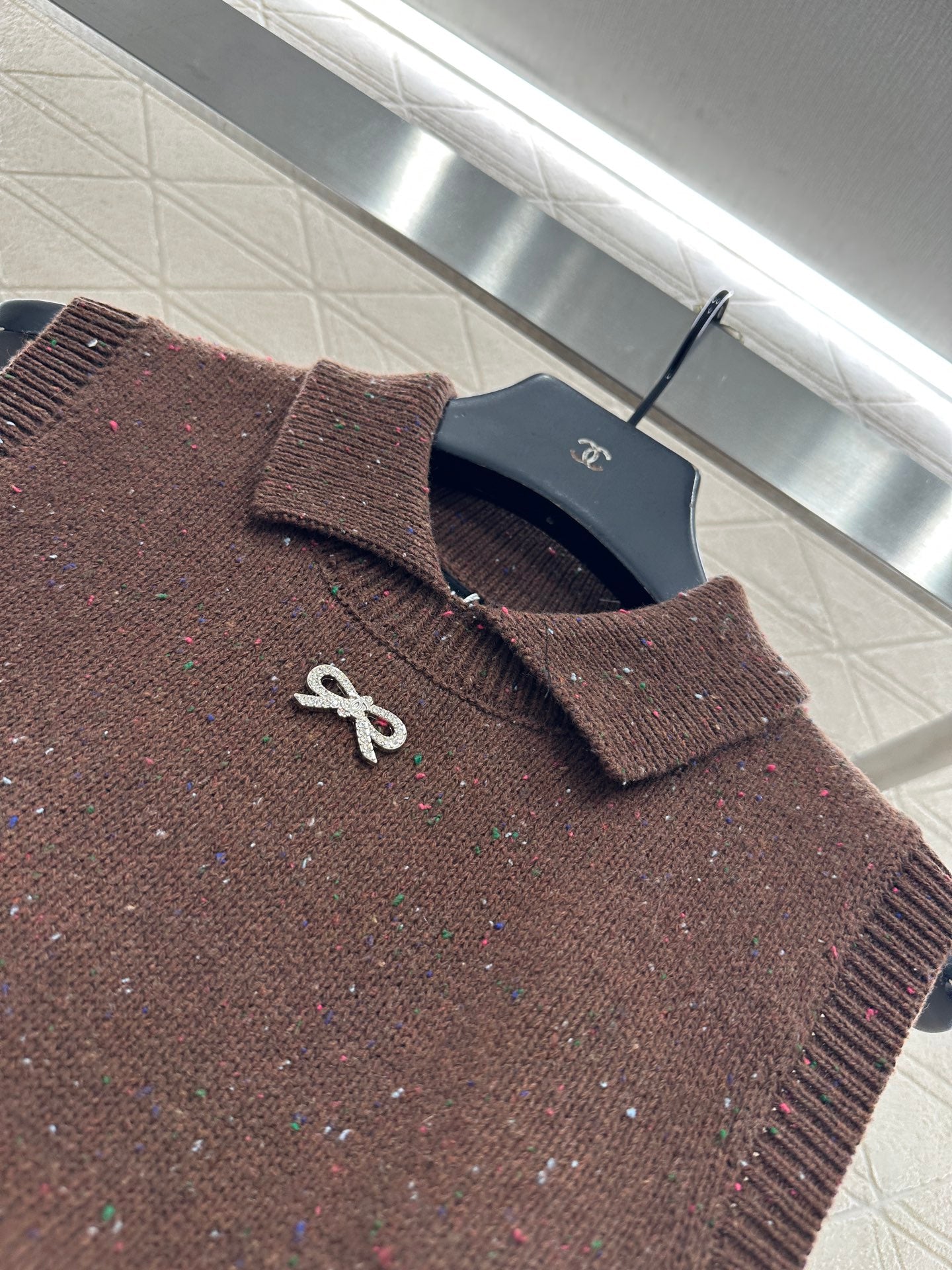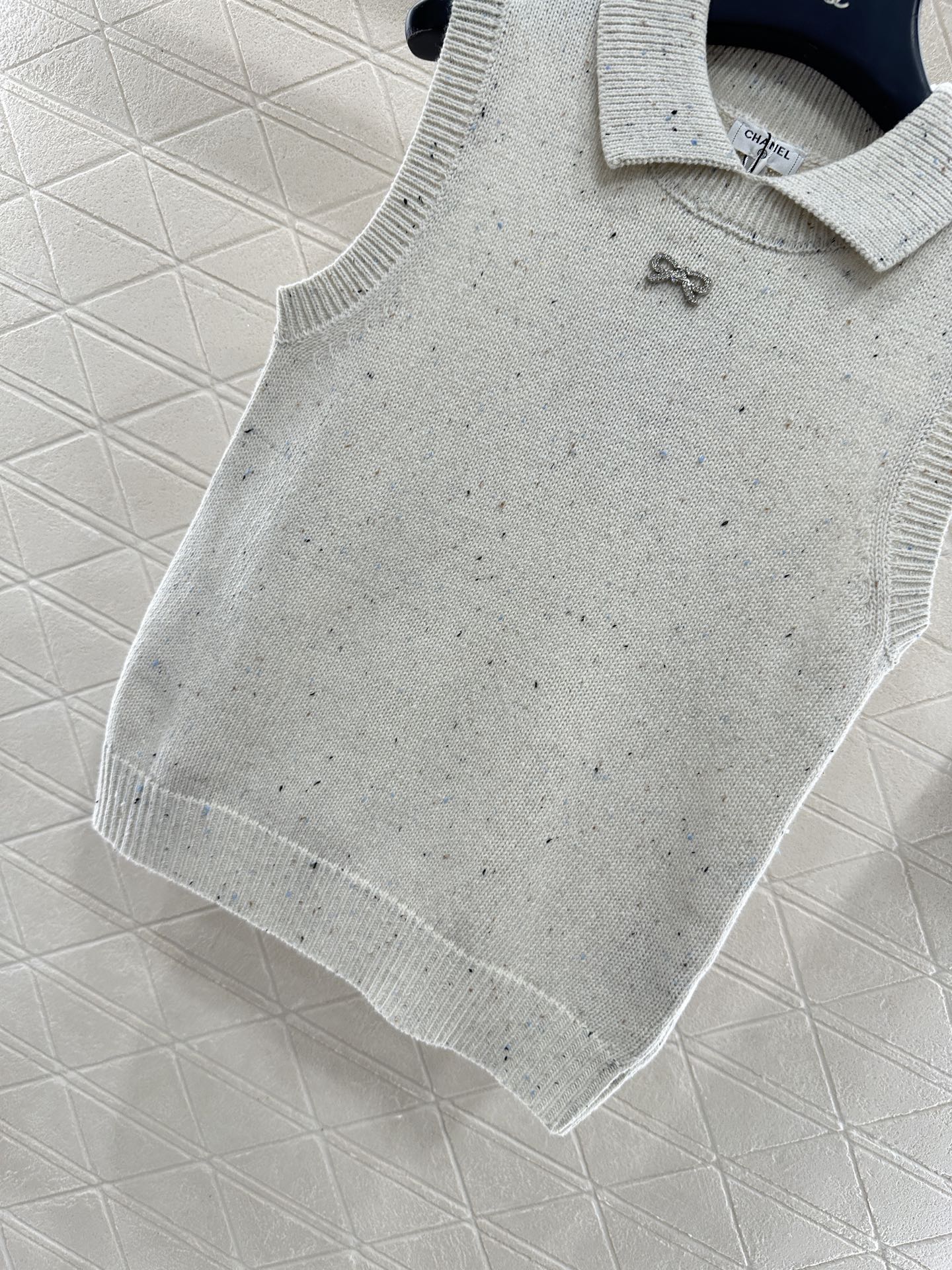 Cotton yarn weaving, delicate and soft, full of elasticity, exquisite lapel vest cutting, 𝑝𝑜𝑙𝑜 collar ➕ Pit strip thread edging design, with solid colors and colored dots throughout the body ➕ Fine knit pattern, embellished with rhinestone bow at the collar, perfect for details, strong retro college style, youthful and white, easy to handle for daily travel or gatherings.