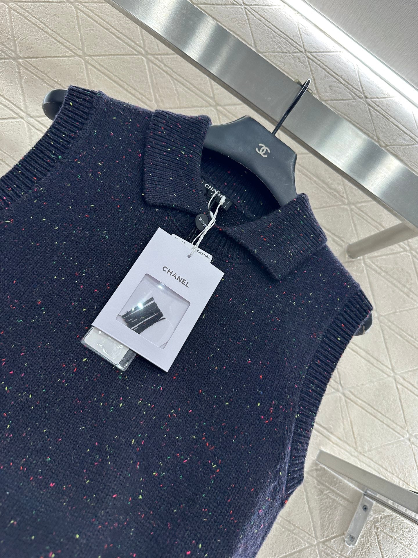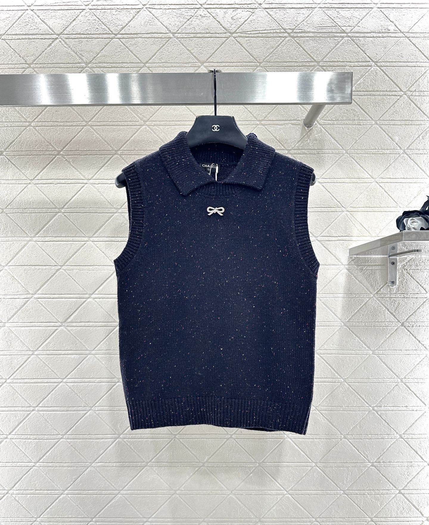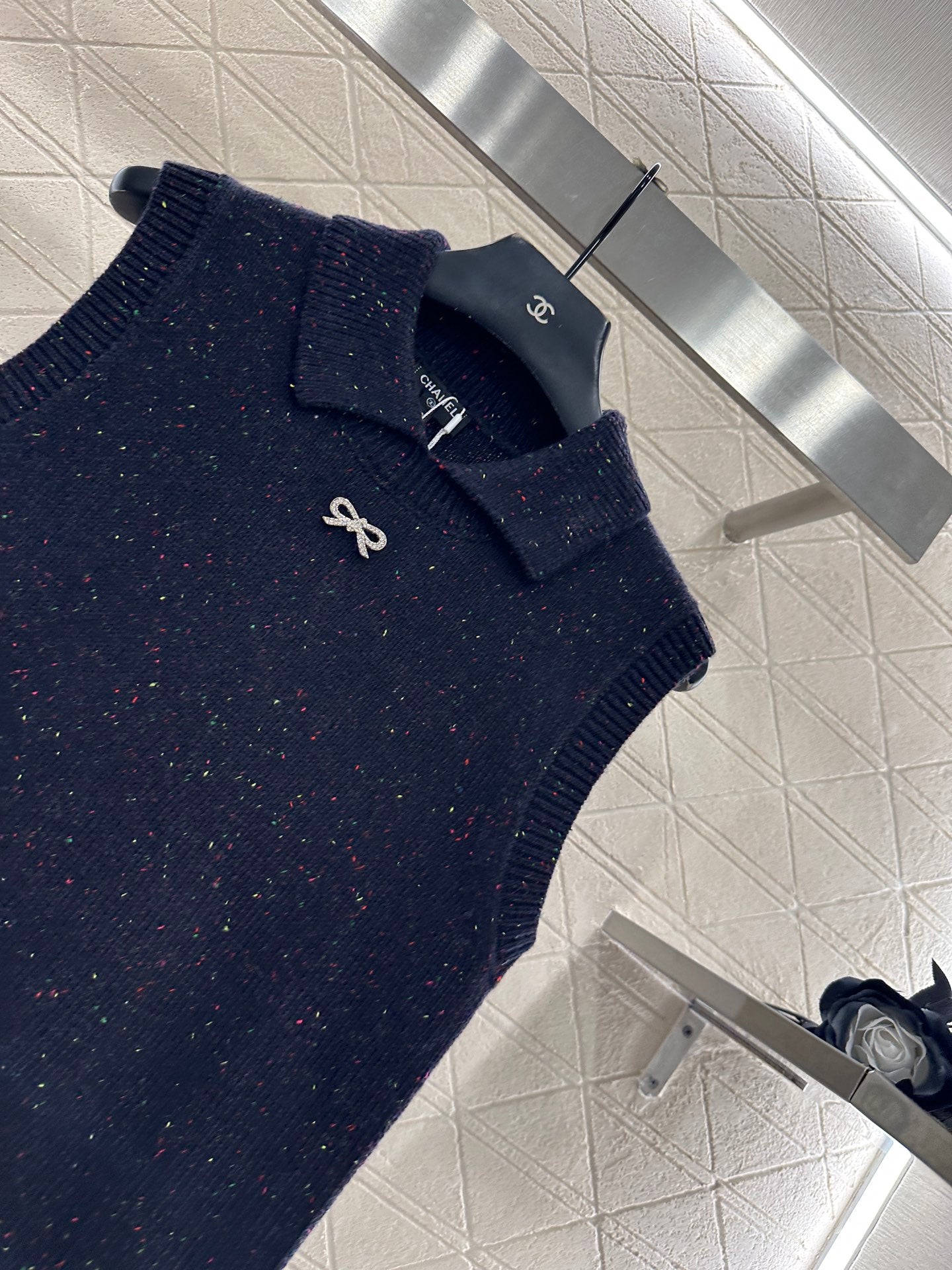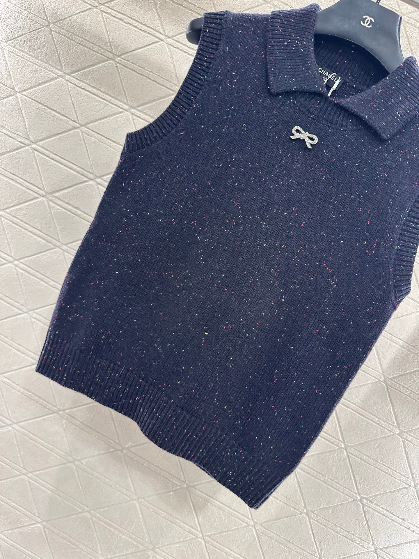 Cotton yarn weaving, delicate and soft, full of elasticity, exquisite lapel vest cutting, 𝑝𝑜𝑙𝑜 collar ➕ Pit strip thread edging design, with solid colors and colored dots throughout the body ➕ Fine knit pattern, embellished with rhinestone bow at the collar, perfect for details, strong retro college style, youthful and white, easy to handle for daily travel or gatherings.