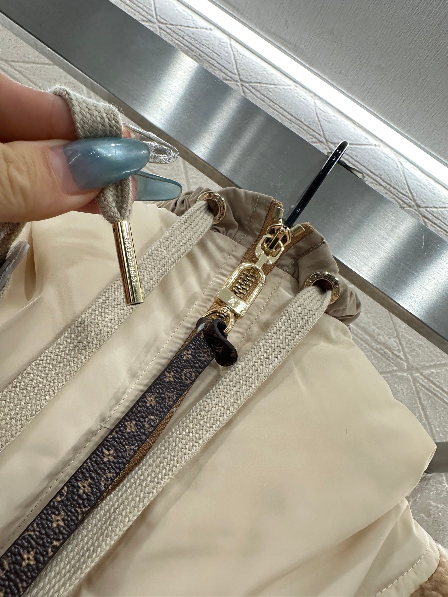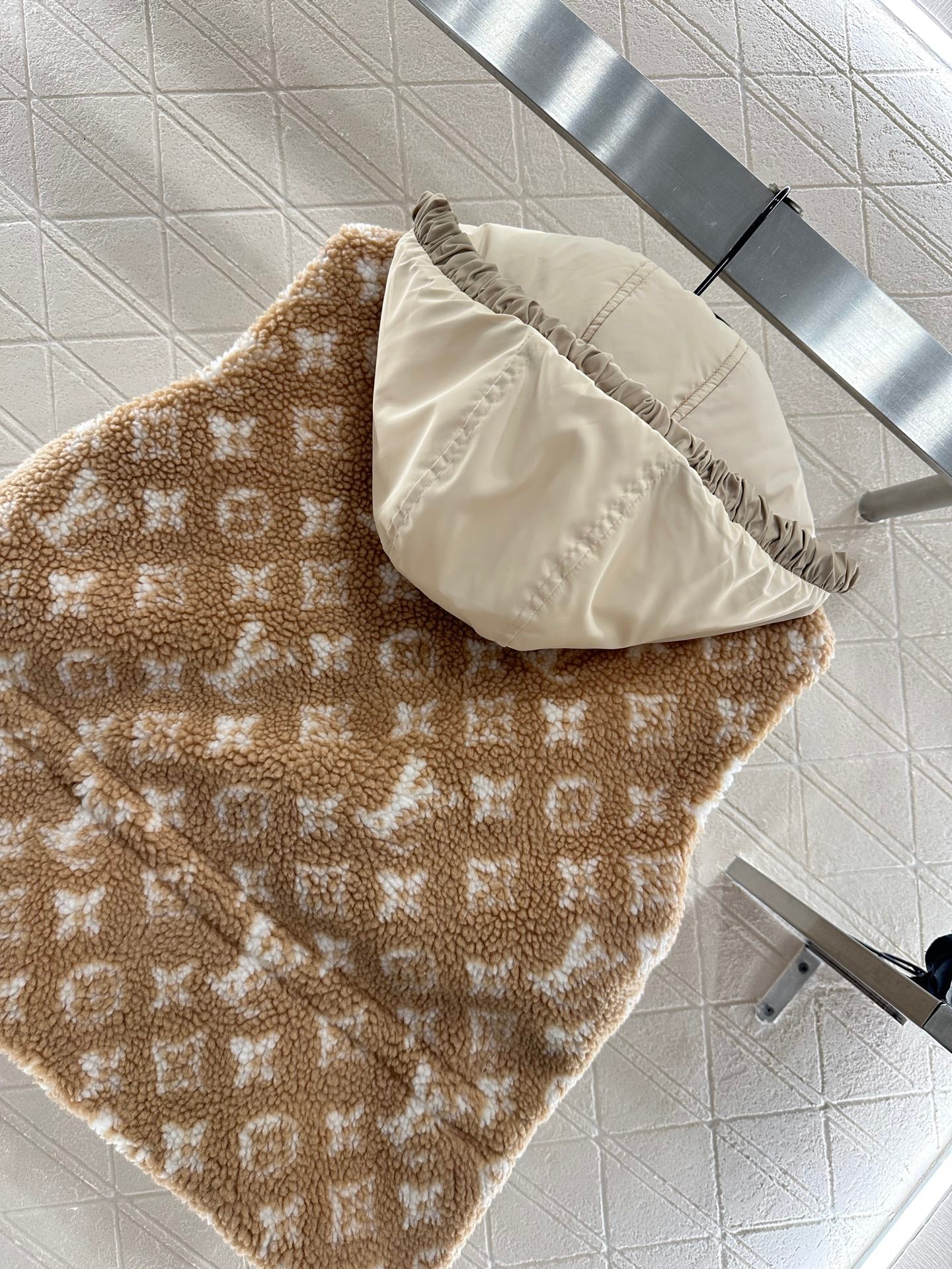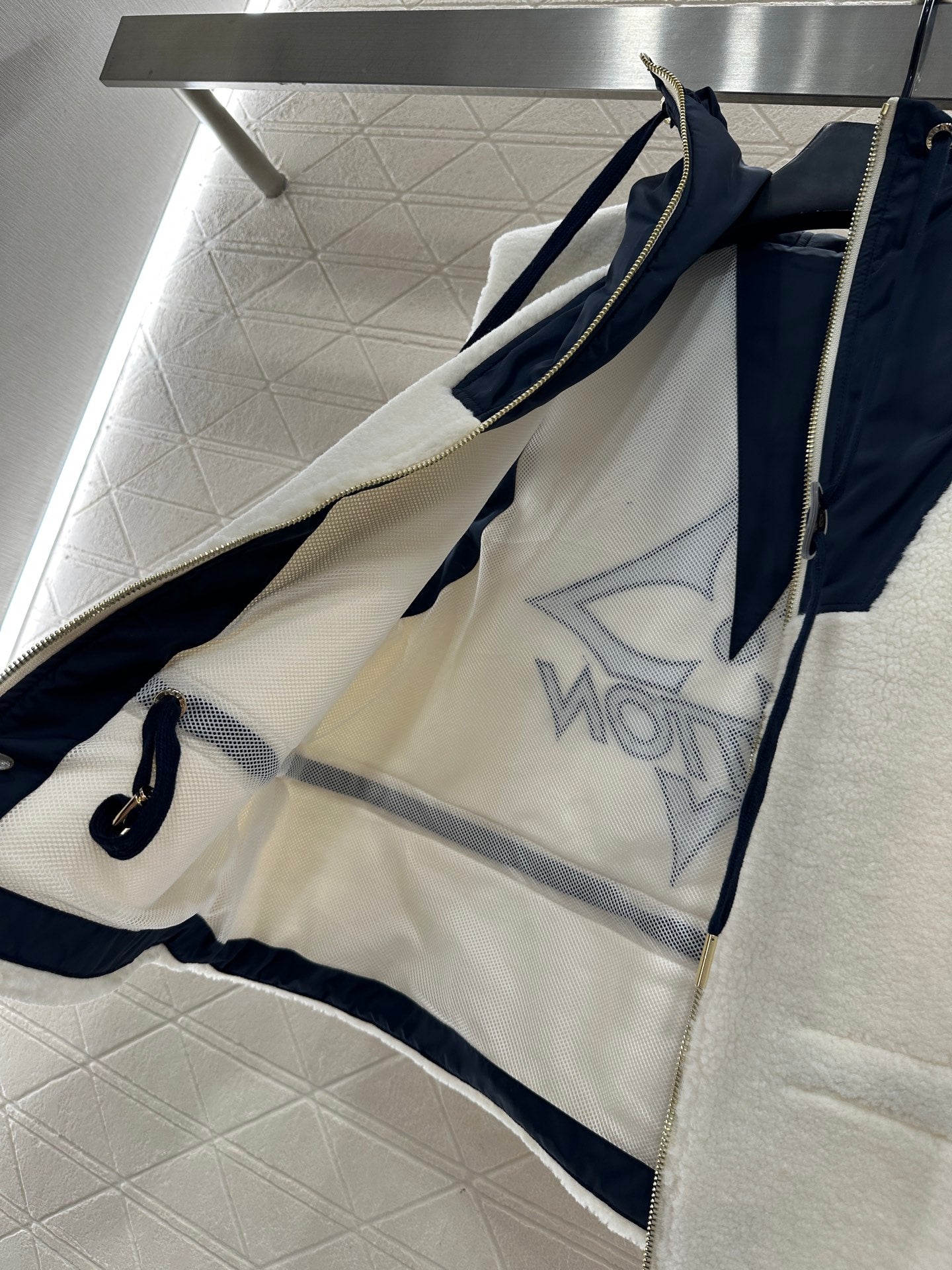 Teddy lamb wool material, sufficient wool volume, windproof and cold proof, hooded vest cut, with obvious lamb wool particles throughout the body, thick and warm, color blocking collision embellishment with four leaf clover letters, nylon edging outline ➕ Exquisite details such as vintage leather buckles, fully breathable mesh inside, showcasing brand style, adding high-end colors, suitable for more dressing occasions and personal styles, regular loose fit, fashionable and inclusive, versatile for autumn and winter.