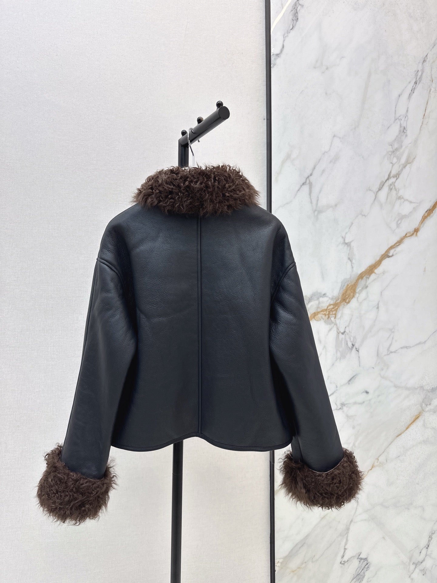 Natural granular fur feels dense and ultra delicate, with contrasting colors. The natural curly fur collar and cuffs are designed with a small, short H-shaped upper body. It has a youthful and casual temperament that is versatile and not picky. The fur side is facing the outside and facing the inside, perfect for pure handmade craftsmanship. The style is extremely simple, high-end, and fashionable