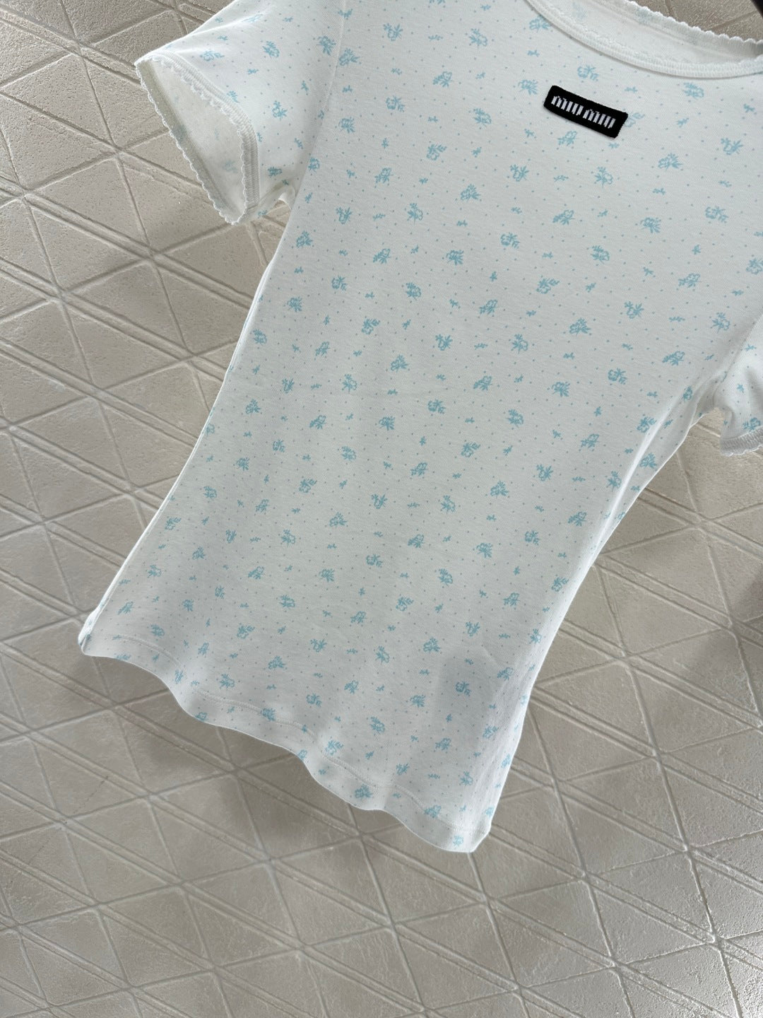 Round neck floral short sleeved shirt