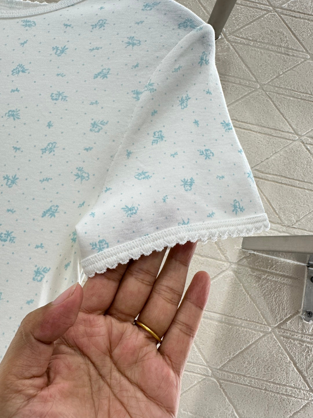 Made of all cotton material, clear and comfortable, full of elasticity, round neck short sleeved cut, threaded wave lace edging on collar and cuffs, solid color base throughout the body ➕ The polka dot floral pattern is fully covered, versatile and durable. The chest is decorated with letter logos to get rid of boring monotony. The slim fit cut, combined with the three-dimensional cutting of the chest, waist and abdomen, fits the body shape, making the outfit look slim and high-end, showing versatility. It is a must-have for daily use in autumn and winter, fashionable and stylish. It can be worn alone in spring and summer, and has a great charm for reducing age.