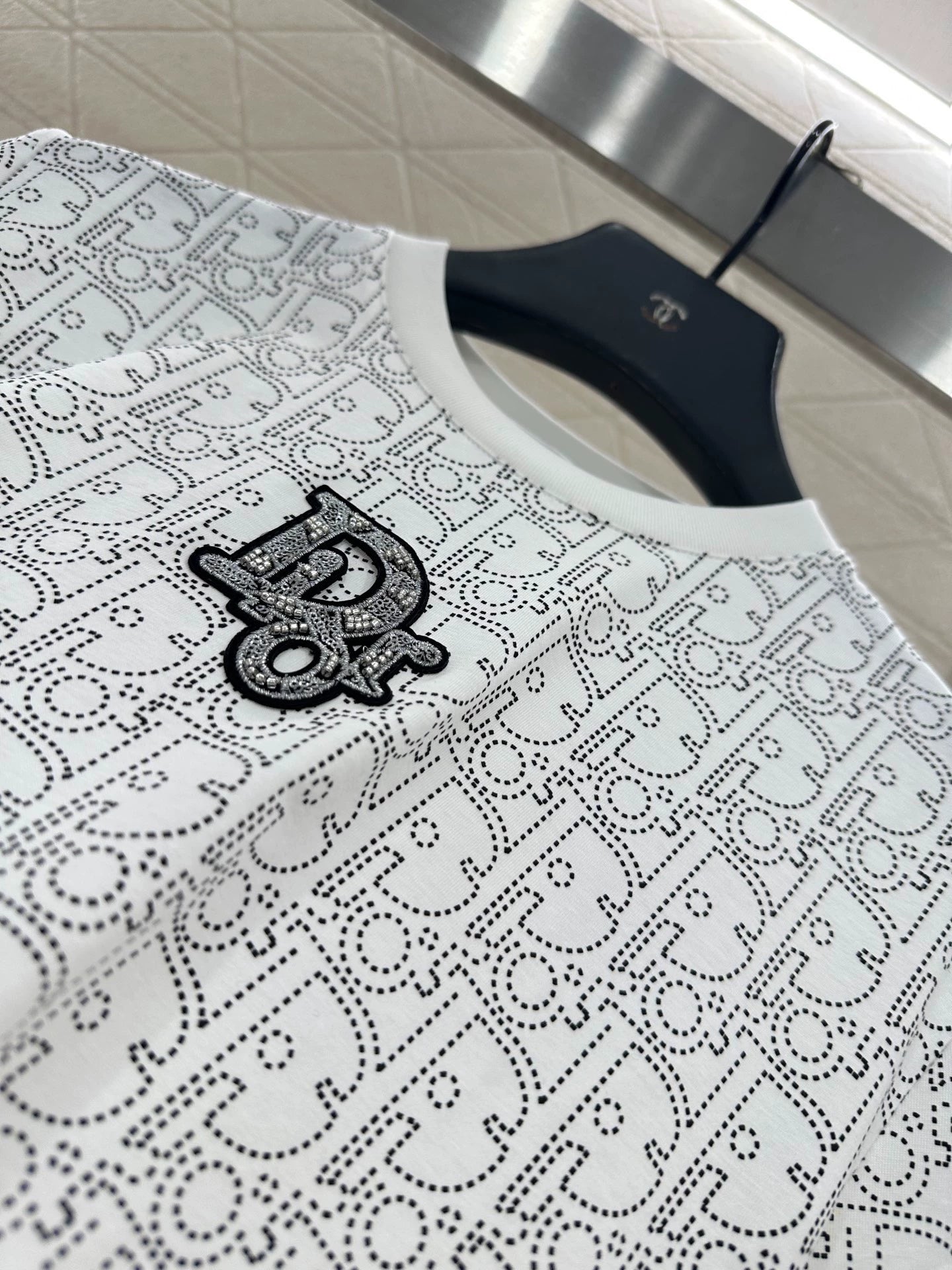 Round neck printed nail bead T-shirt