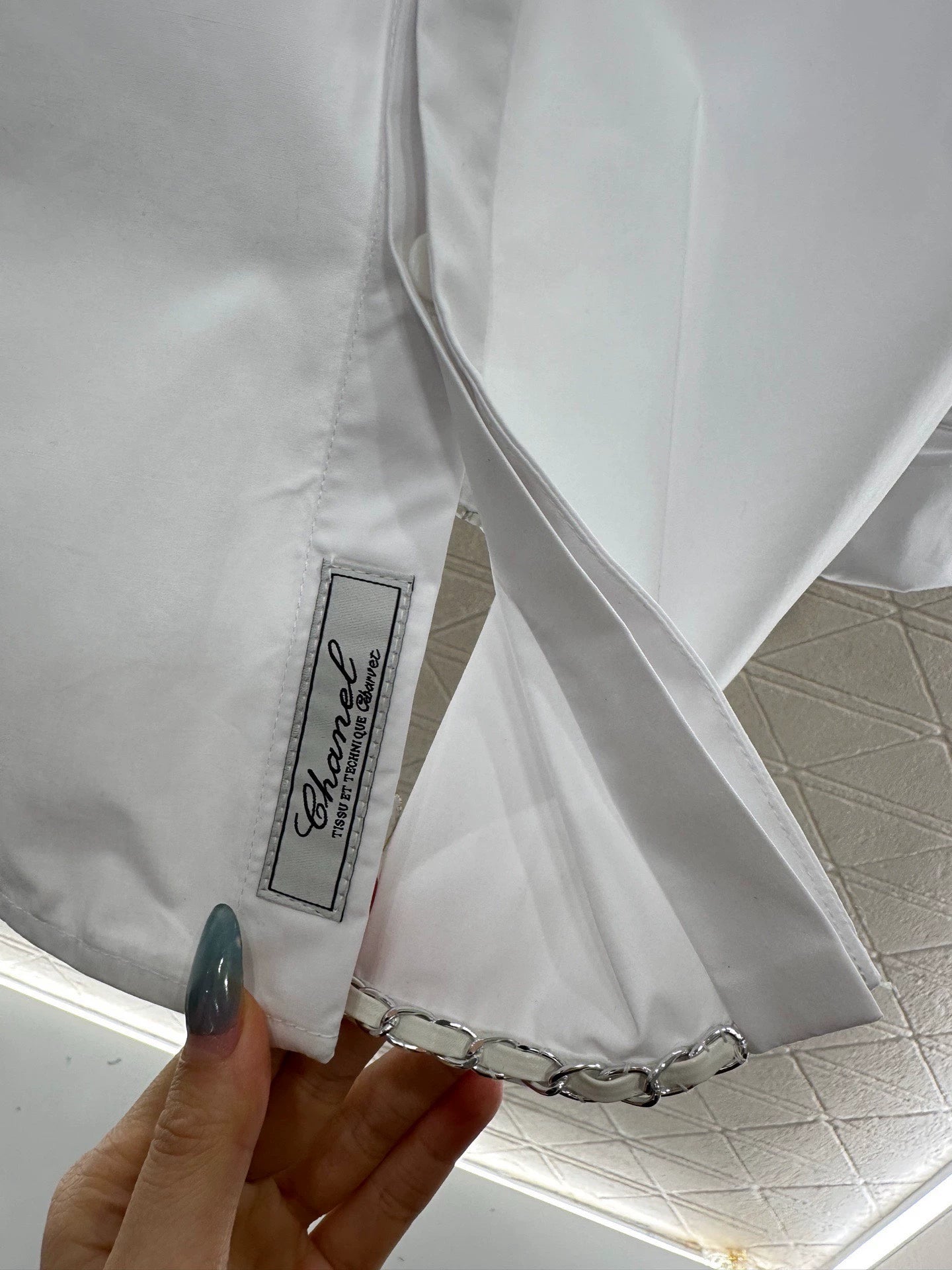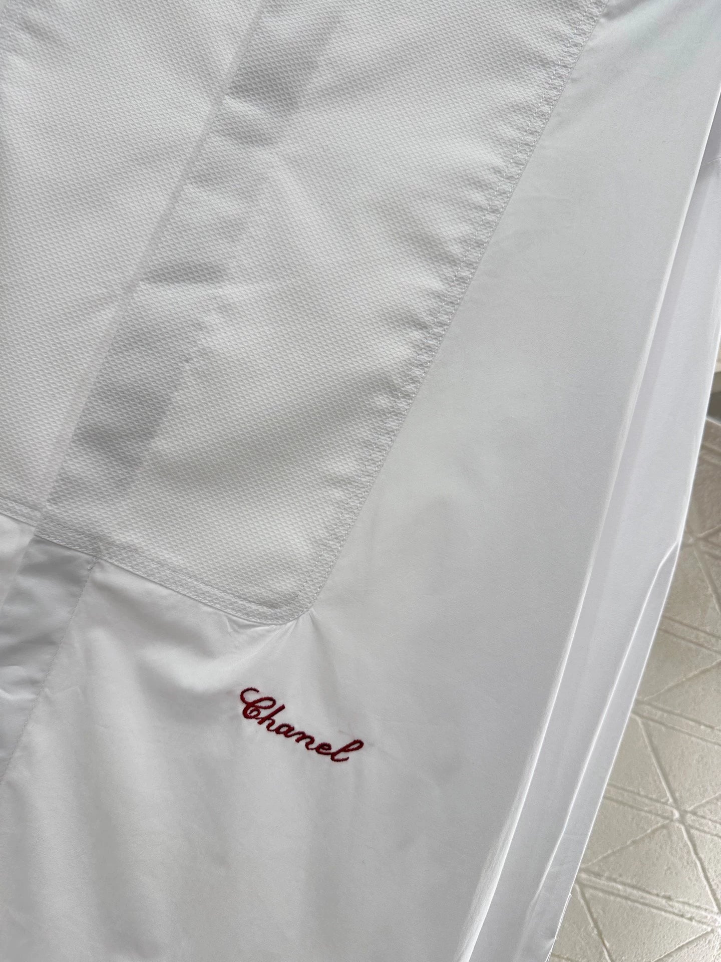 Made of all cotton material, the texture is comfortable and delicate. The loose cut shirt with a stand up collar and shoulder is versatile in solid color. The collar edge is embellished with pearl round buckles, and the texture in the center of the chest collides with the body. It is decorated with a single-sided embroidered logo, which echoes the fabric label and chain on the inside of the collar. The layered design highlights the brand style, and the upper body is full of lazy elite atmosphere. It can be easily matched with a skirt or pants, and the delicacy is instantaneous. It is a basic shirt that can be easily worn for daily commuting and vacation, giving off a sense of sophistication.