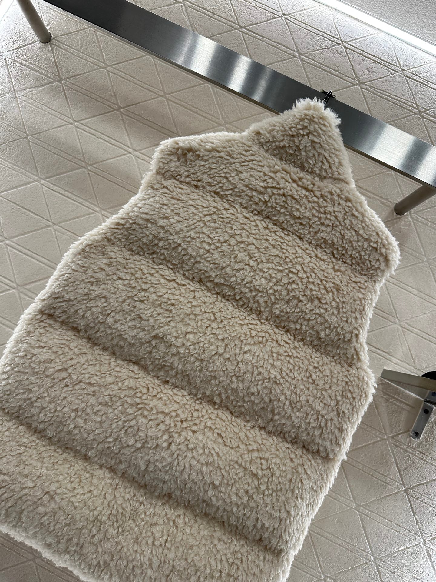 The outer layer is decorated with three-dimensional fluffy teddy plush material, which is soft and comfortable in texture. The hooded zipper vest cut is fashionable and stylish, and the chest badge shows the brand style. The overall silhouette is upright, slim fit, with a furry feel and zipper pockets ➕ Elastic elastic band enhances the convenience and practicality of on and off, giving it a stylish and sticky look. It is the first choice for keeping warm in autumn and winter.