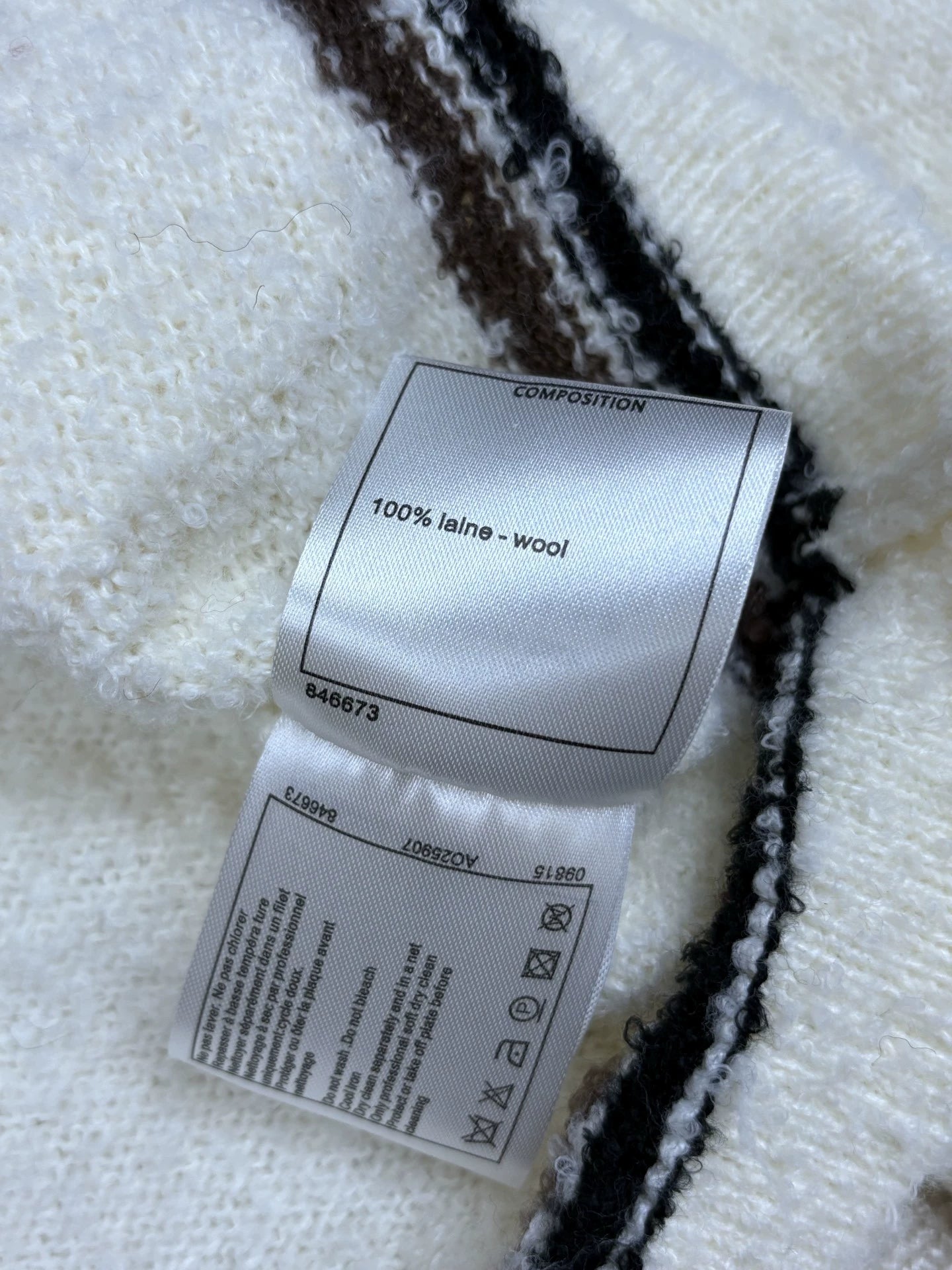 Classic white+brown edge color scheme, 100% wool, soft fabric, comfortable to wear in autumn and winter seasons, loose fit, suitable for daily commuting and leisure, versatile with skirts and pants